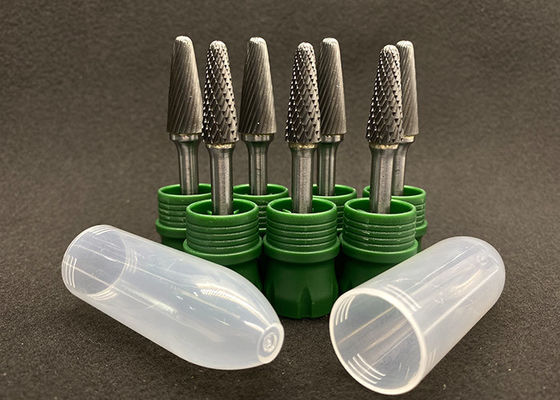 Le sbavature del carburo del taglio del doppio tendono ad essere usate sui metalli ferrosi e non ferrosi, l'alluminio, l'acciaio molle ed anche per tutti i materiali del metalloide quali la plastica ed il legno. Hanno più avanguardie e rimuoveranno il materiale più velocemente. Il taglio del doppio a volte referrred a poichè il taglio del diamante o il taglio dell'incrocio (un taglio di 2 flauto attraverso a vicenda) lascerà un rivestimento più regolare che il singolo taglio dovuto la produzione dei chip più piccoli come tagliano via il materiale. Uso per rimozione, la sbavatura, la finitura e la pulizia delle azione della medium-luce. Una sbavatura doppia del carburo del taglio è il taglio più popolare e vi vederà con la maggior parte delle applicazioni.