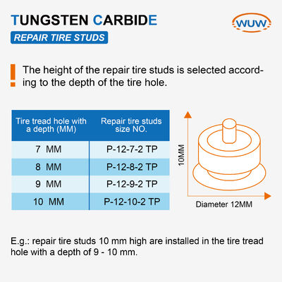 | Application | Carbide repair tire studs are suitable for repairing worn-out tires. Helps the damaged tires to continue to be used. |